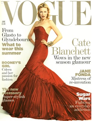 unlabelled, worn by Cate Blanchett on the cover of British Vogue, June 2005, with dramatic knife-pleated fishtail hem, the line edged with grosgrain ribbon, strapless lightly-boned bodice and with a half-petticoat, the skirt of voluminous layers of tulle