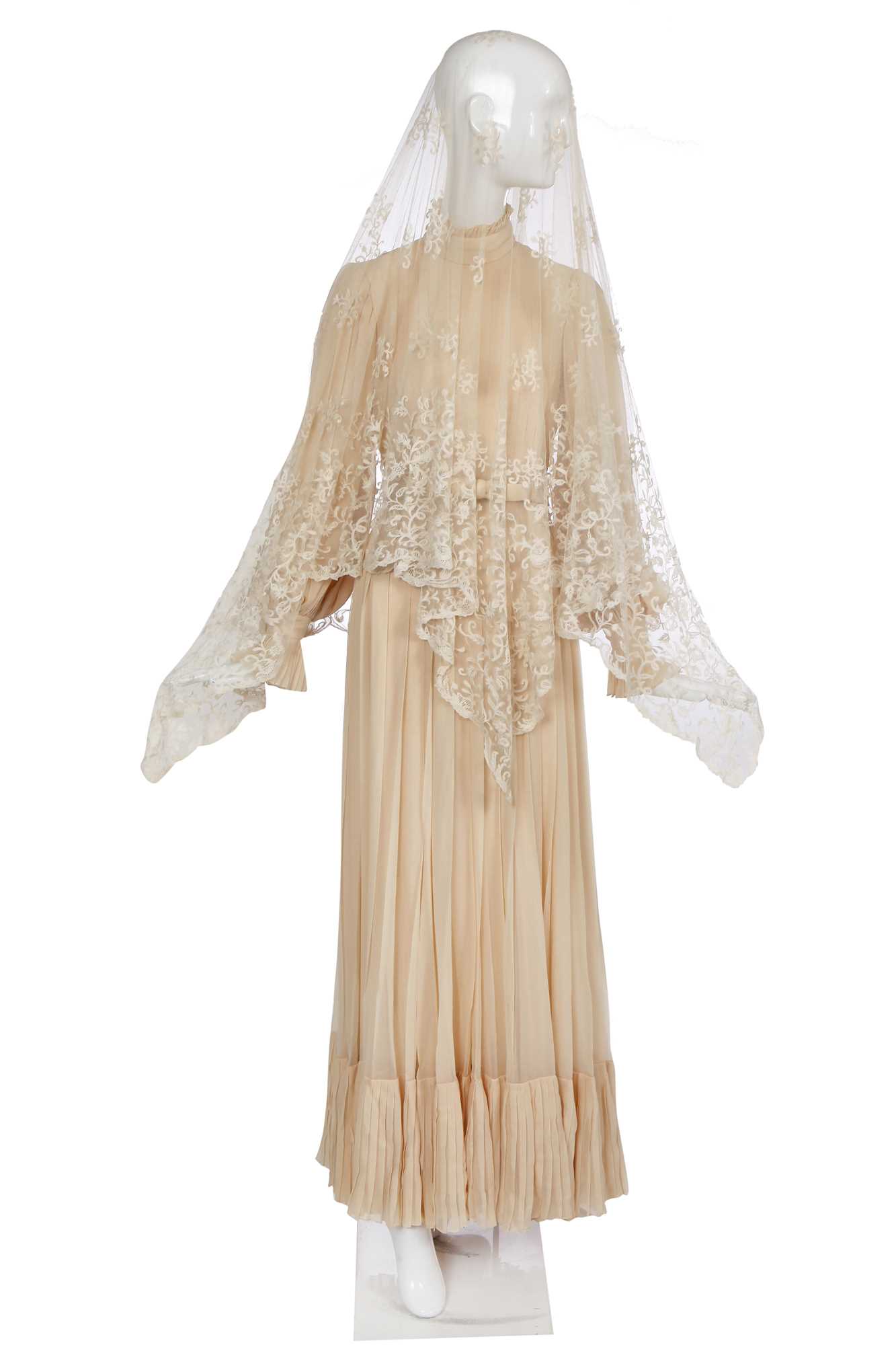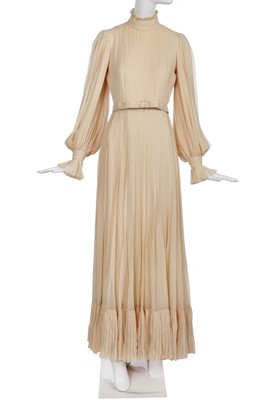A Christian Dior London by Marc Bohan ivory silk chiffon wedding gown, 1970s