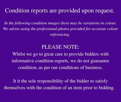 (a) KT’s knowledge of lots is partly dependent on information provided by the Seller and KT is unable to exercise exhaustive due diligence on each lot. Each lot is available for examination before sale. Bidders are responsible for carrying out examinations and research before sale to satisfy themselves over the condition of lots and accuracy of descriptions.