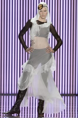 A John Galliano ivory chiffon bias-cut dress, 'Techno Romance' collection Autumn-Winter 2001-02