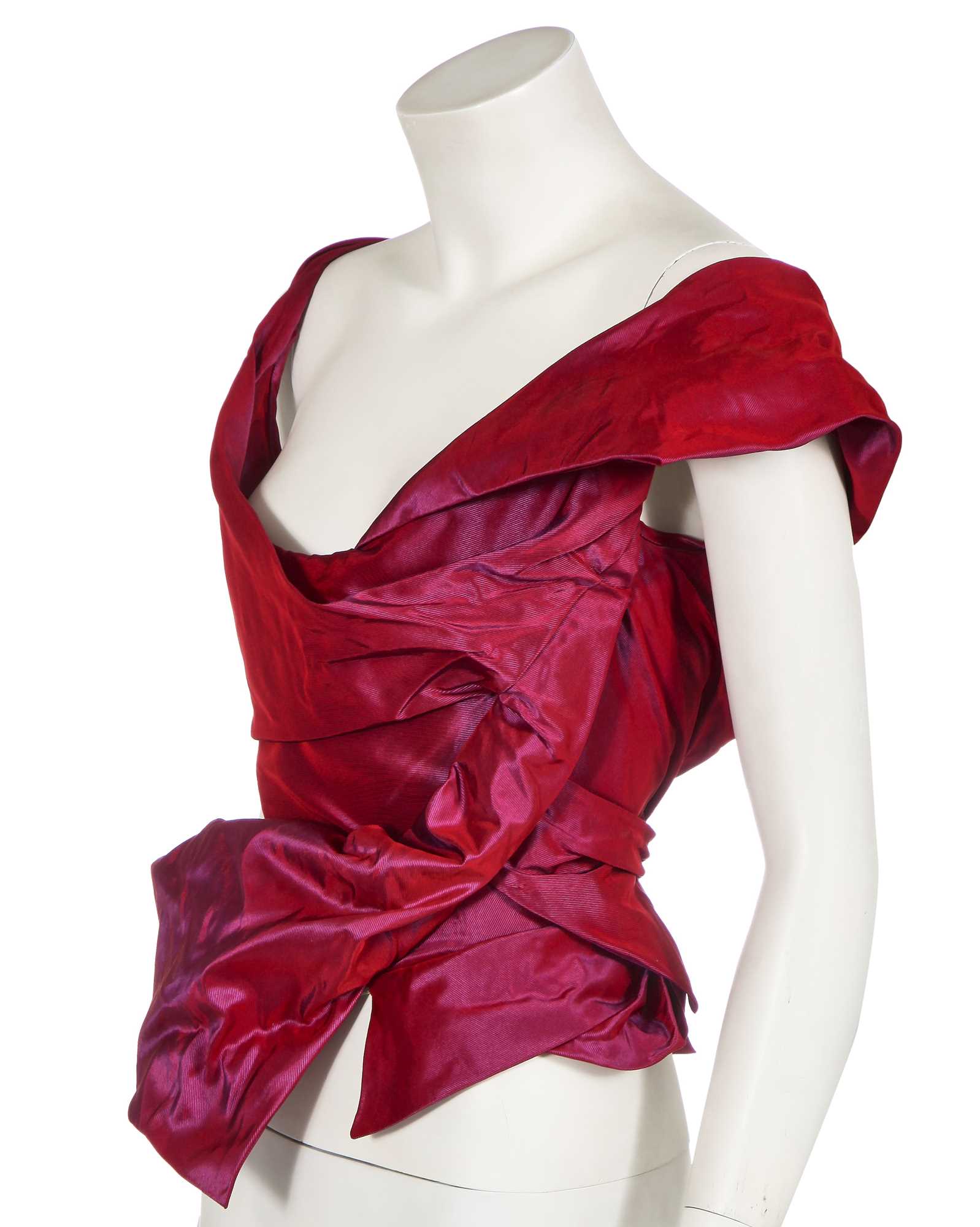 A Vivienne Westwood red shot-silk corset top, 2010s