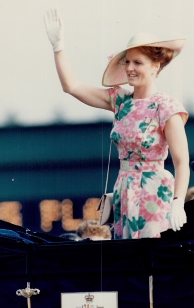 Two of the ensembles are by British couturier Lindka Ceirach, who also designed her wedding dress. The Duchess selected Lot 342- the teal printed day dress- to wear during a visit to the Berlin Wall in May, 1989, where she was photographed visiting school children and also behind the wheel of a bus. Lot 343, the pink floral silk dress, was worn during an official royal tour of Canada in July 1987, and again during a visit to Mauritius in September of the same year. And lastly, the sun and star printed bright green silk ensemble by Tomasz Starzewski was worn in part to attend Royal Ascot on the 20th May, 1991. The Duchess’s complete ensemble that day included a purple skirt, tailored green jacket, matching clutch, gloves and a wide-brimmed hat with purple ribbon trim - a head-turning look she re-interpreted for the wedding of her daughter, Princess Eugenie, in 2018.